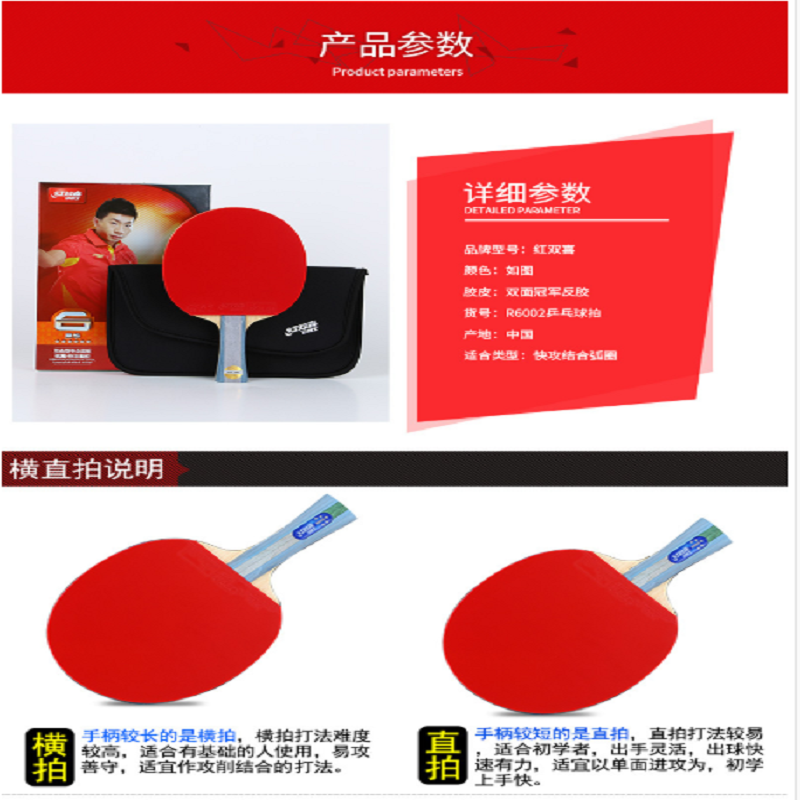 紅雙喜雙面反膠乒乓球拍R6002