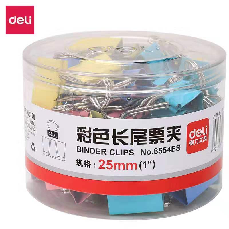 得力彩色長尾票夾15mm